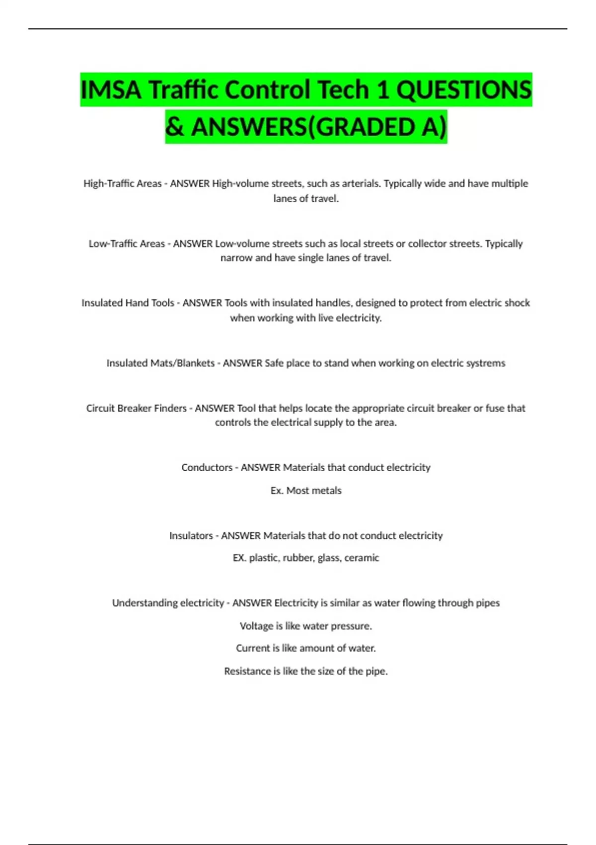 Understanding electricity - ANSWER Electricity is similar as water flowing through pipes