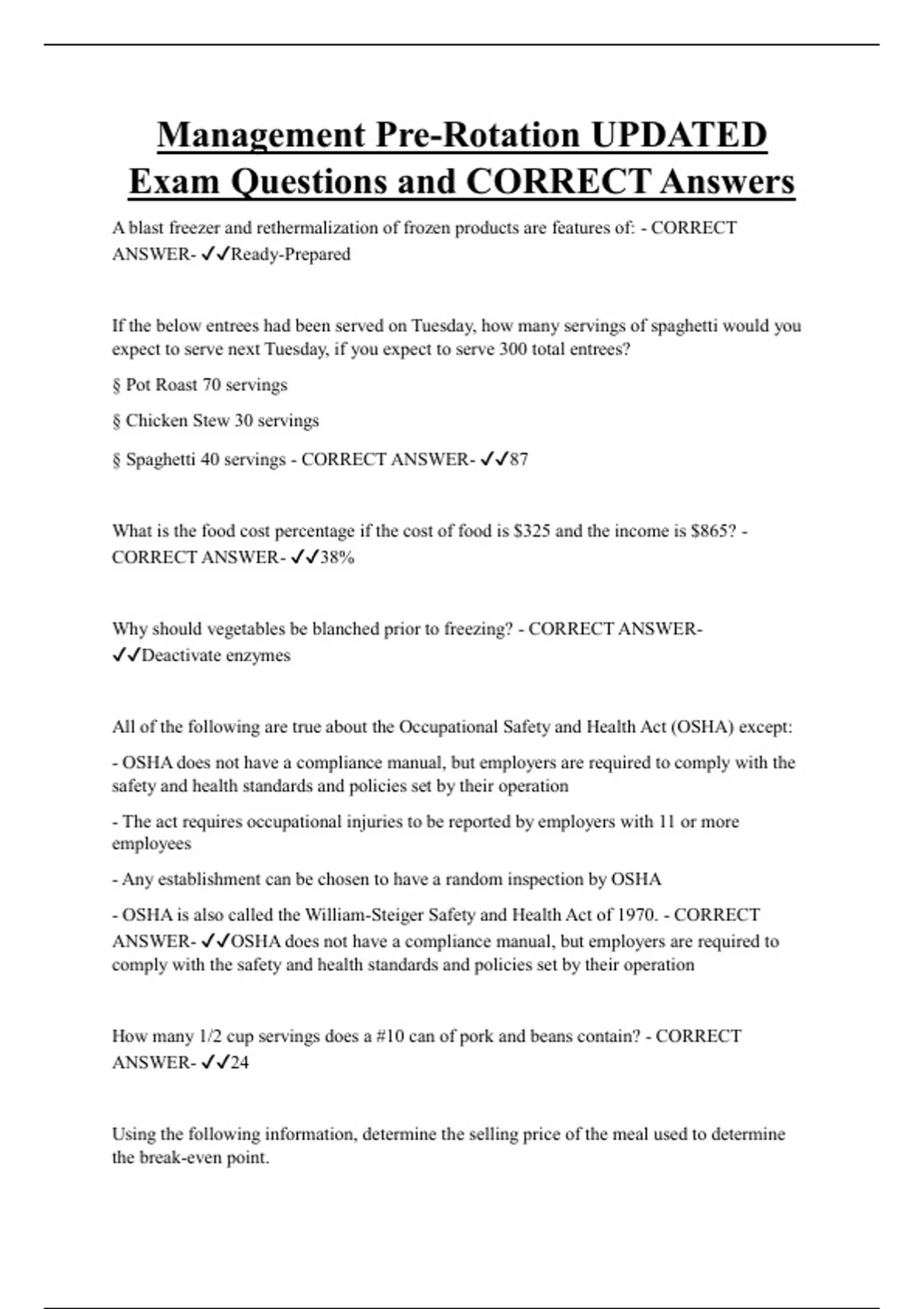 ANSWER- ✔✔Standards for receiving, storage, preparation, display, service, transportation