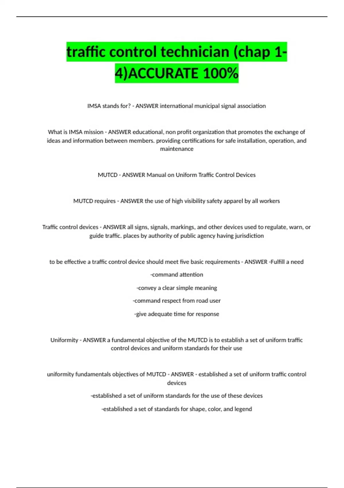 uniformity fundamentals objectives of MUTCD - ANSWER - established a set of uniform traffic control
