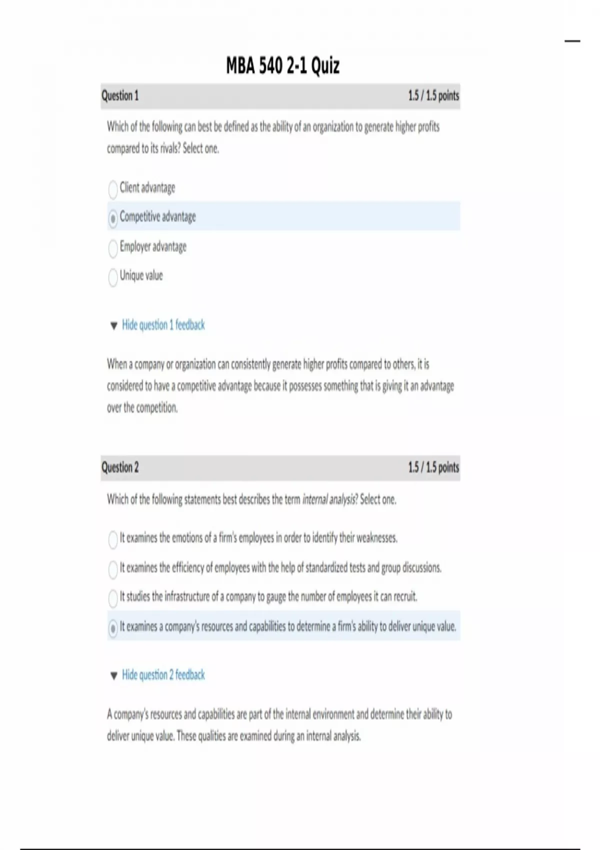 MBA 540 2-1 Quiz Answered Fall 2024/25.
