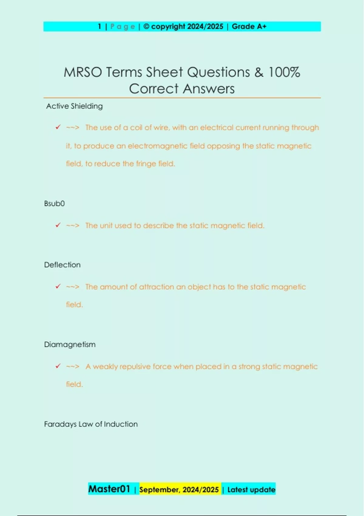 MRSO Terms Sheet Questions & 100%