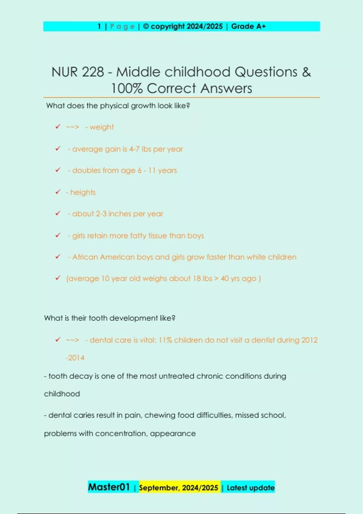 NUR 228 - Middle childhood Questions &
