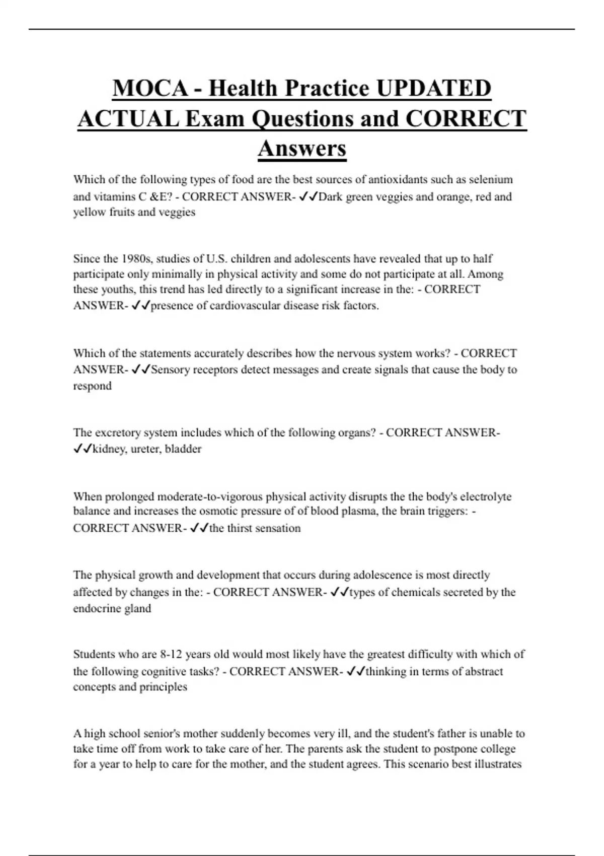 MOCA - Health Practice UPDATED ACTUAL Exam Questions and CORRECT Answers