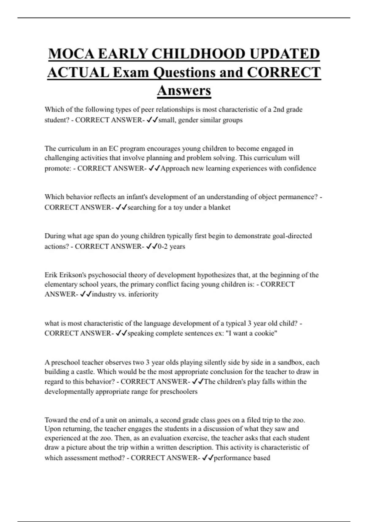 MOCA EARLY CHILDHOOD UPDATED ACTUAL Exam Questions and CORRECT Answers