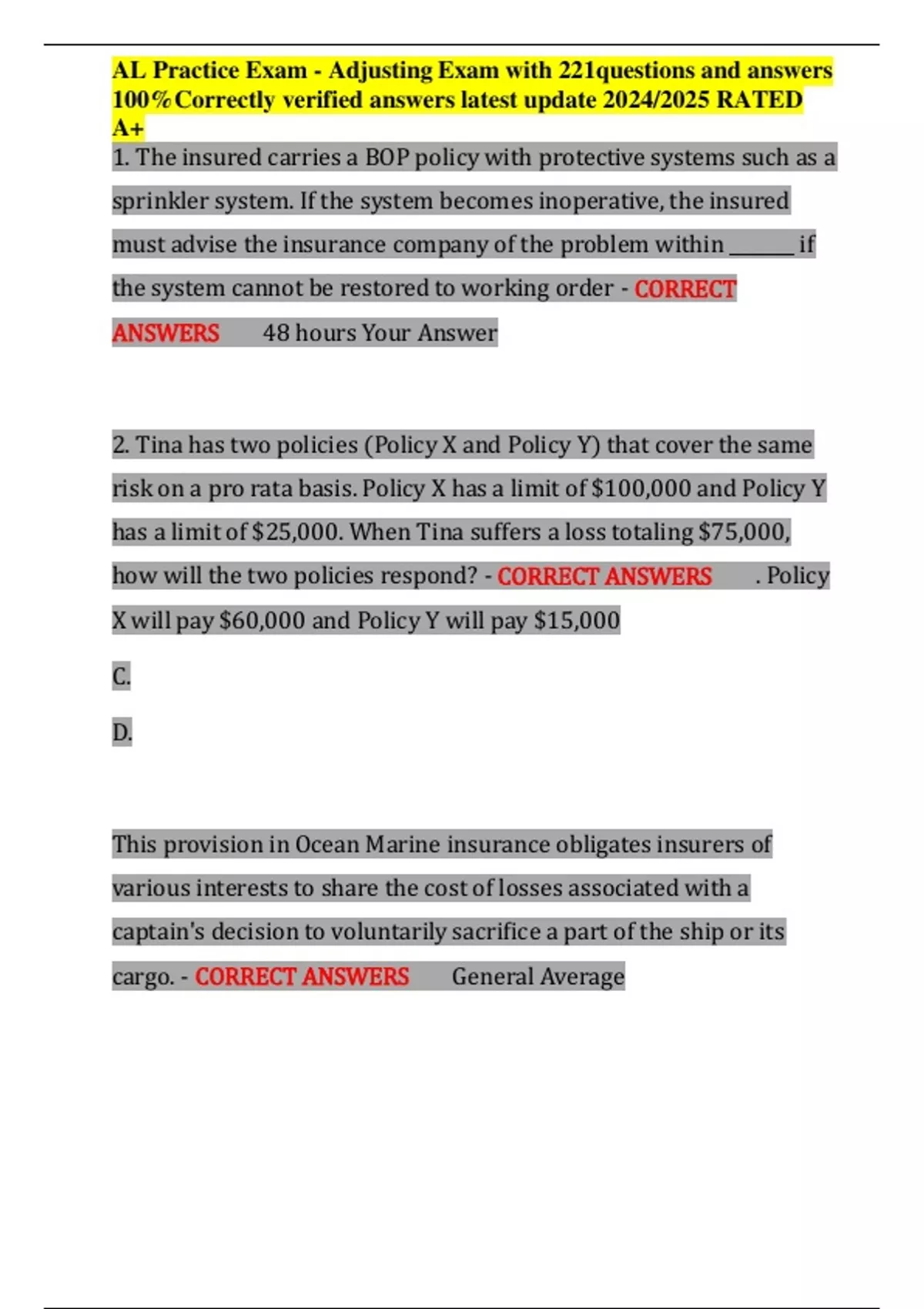 , AL Practice Exam - Adjusting Exam with 221questions and answers