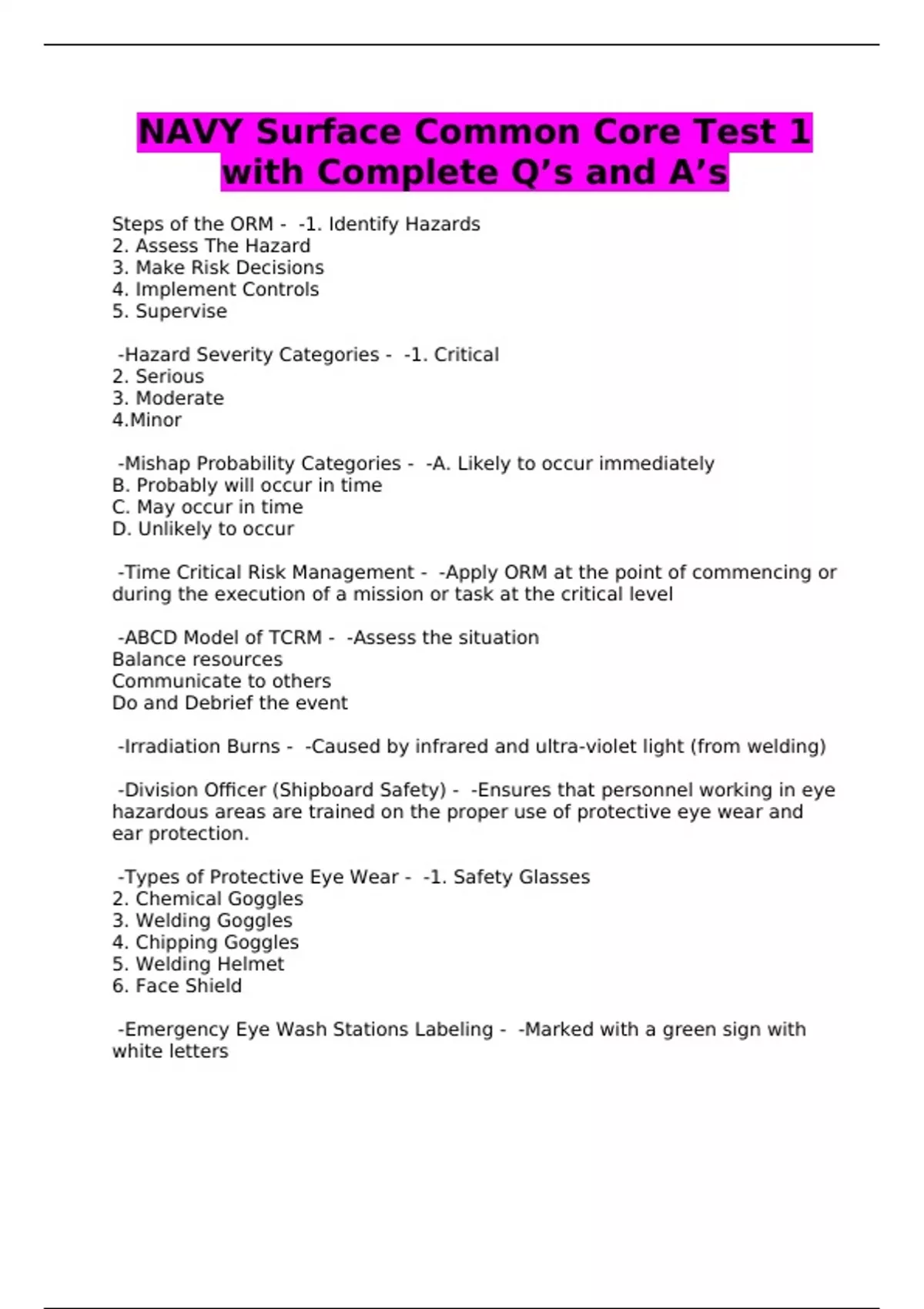 NAVY Surface Common Core Test 1 with Complete Q’s and A’s