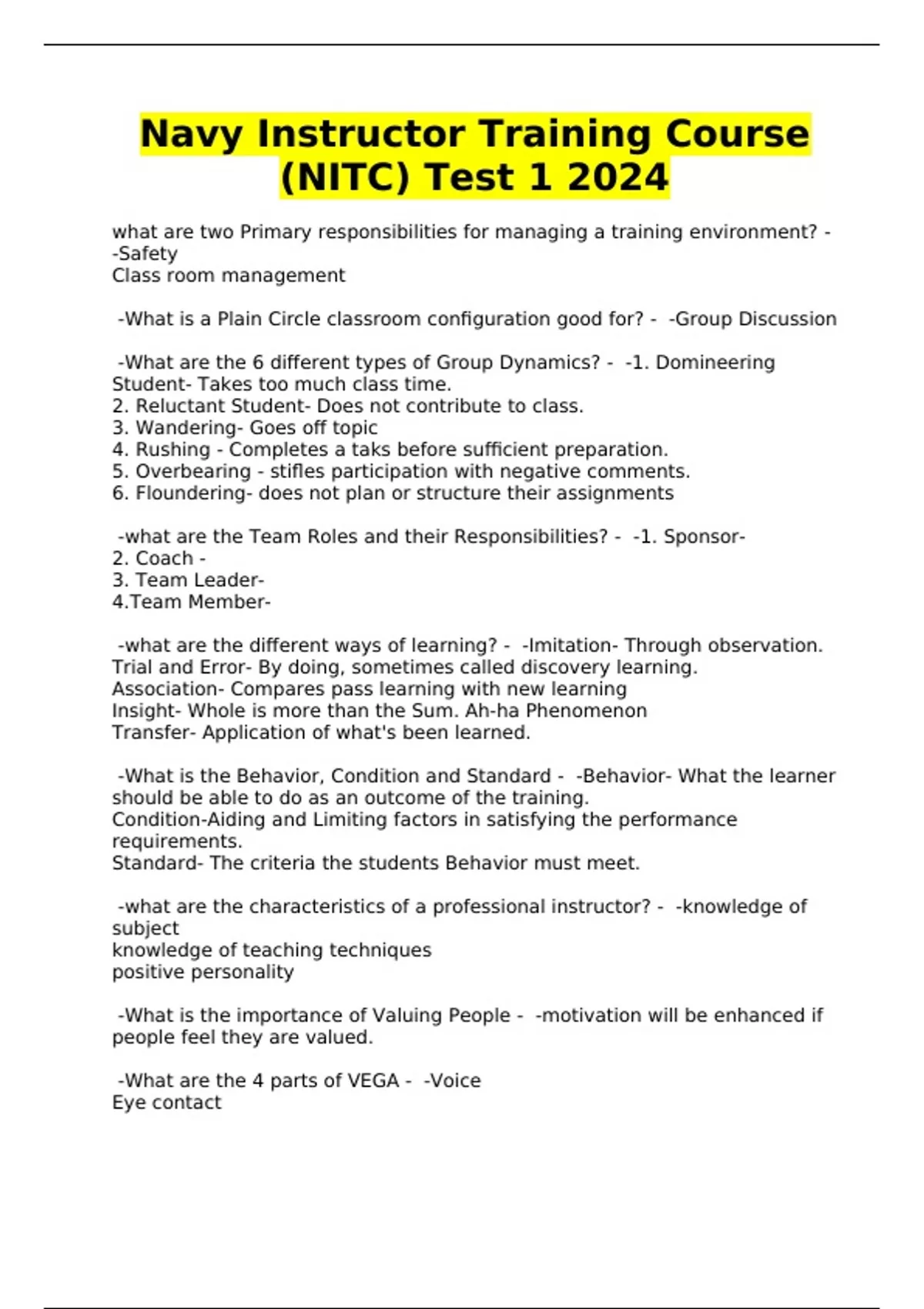 -what are the characteristics of a professional instructor? - -knowledge of