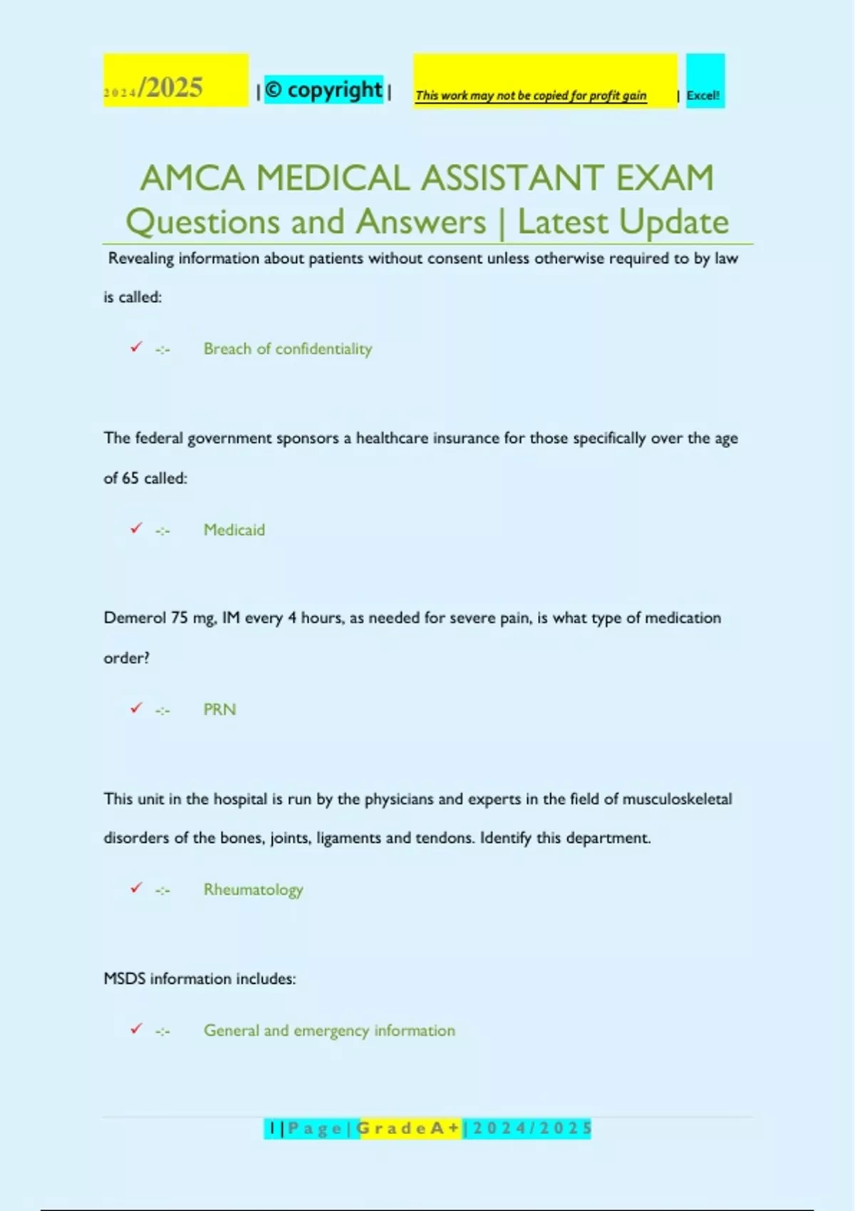 , 2024 /2025 | © copyright | This work may not be copied for profit gain | Excel!