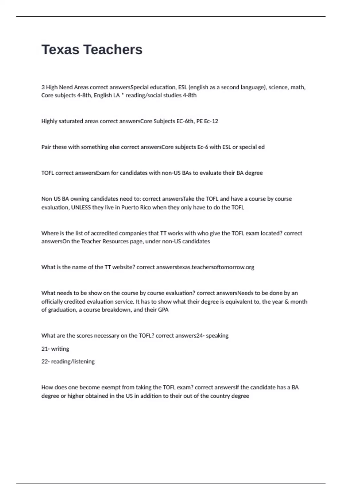 TOFL correct answersExam for candidates with non-US BAs to evaluate their BA degree