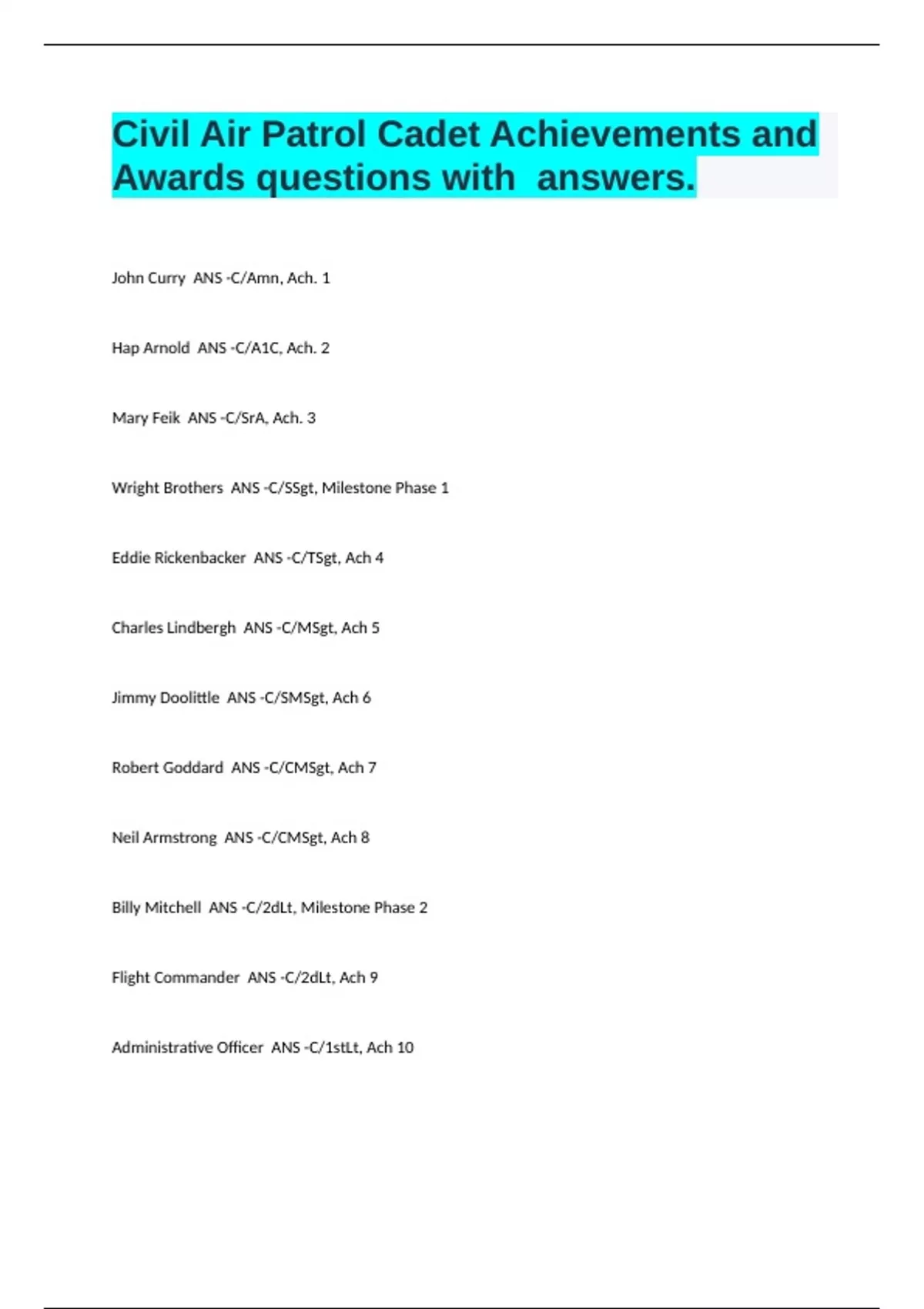Charles Lindbergh ANS -C/MSgt, Ach 5