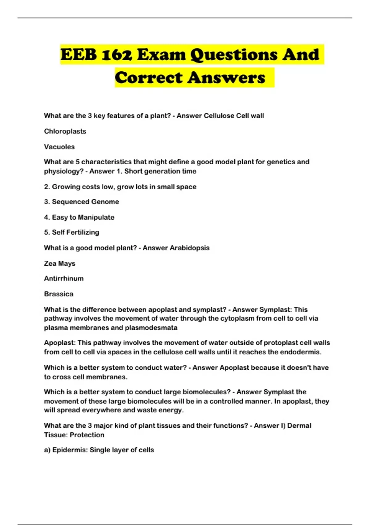 What are the 3 key features of a plant? - Answer Cellulose Cell wall