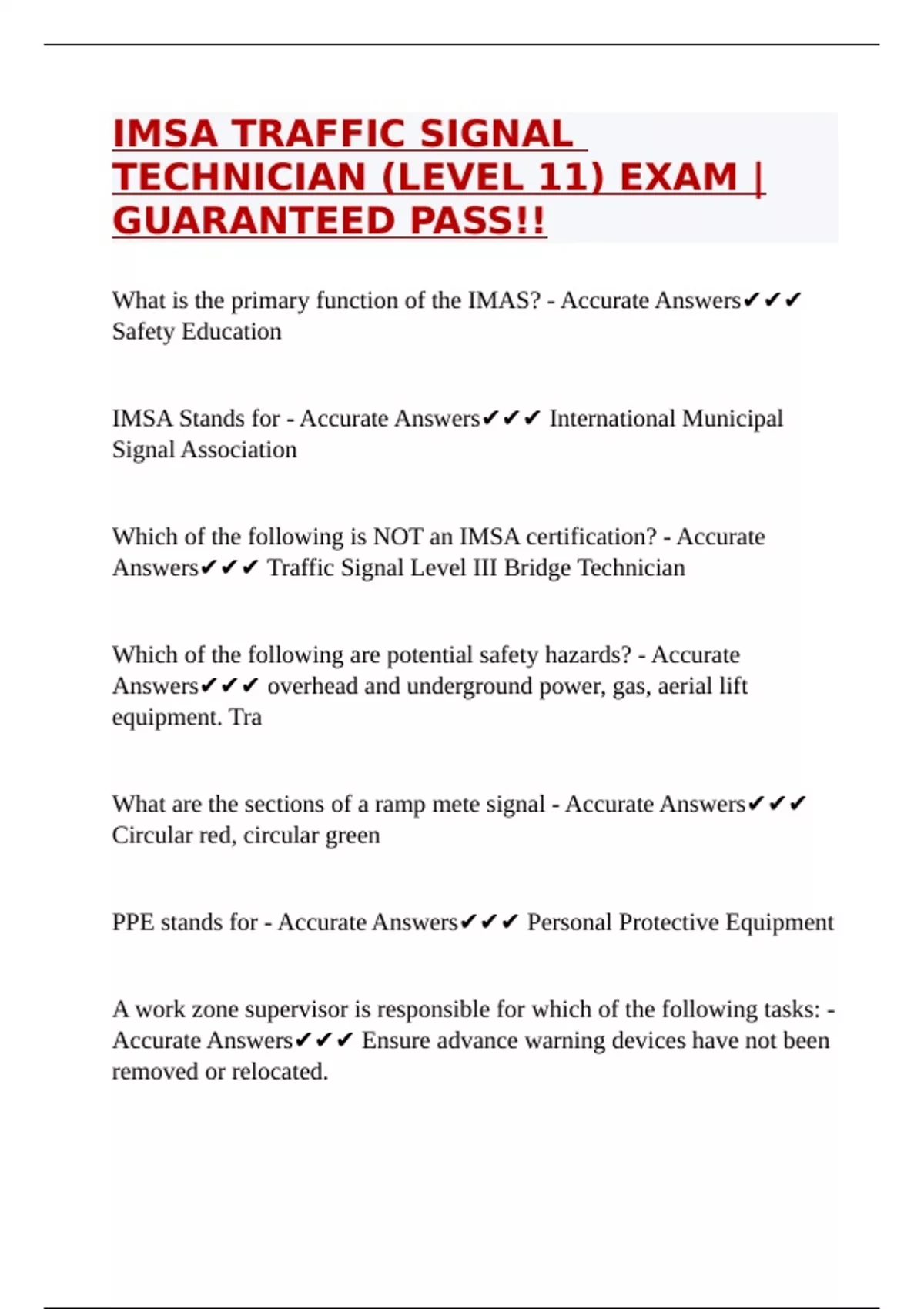 IMSA TRAFFIC SIGNAL TECHNICIAN (LEVEL 11) EXAM |GUARANTEED PASS!!