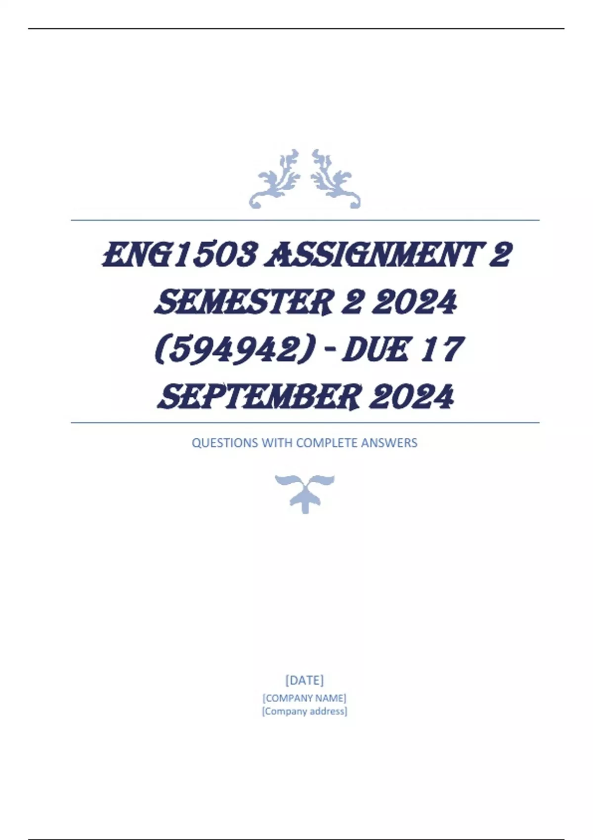 ENG1503 Assignment 2 Semester 2 2024 (594942) - DUE 17 September 2024 QUESTIONS WITH COMPLETE ANSWERS