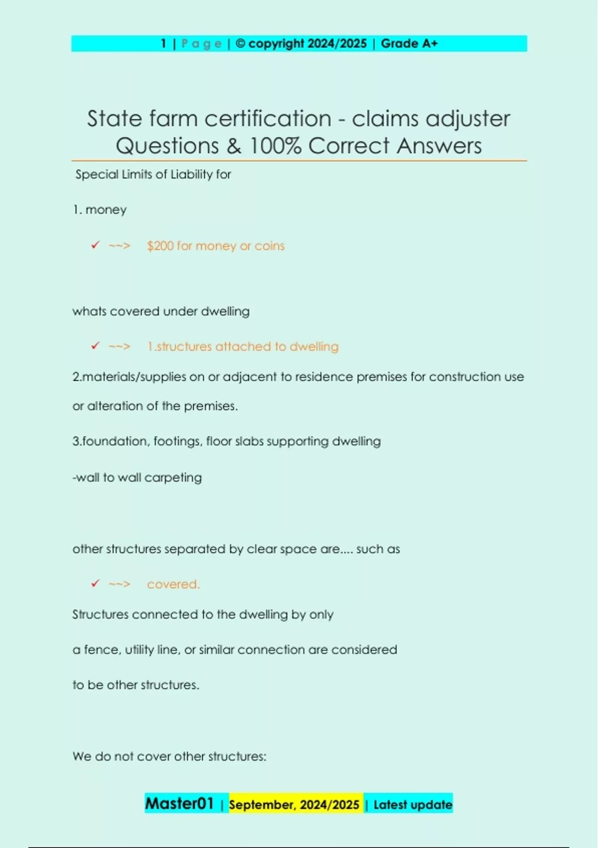 State farm certification - claims adjuster Questions & 100% Correct Answers