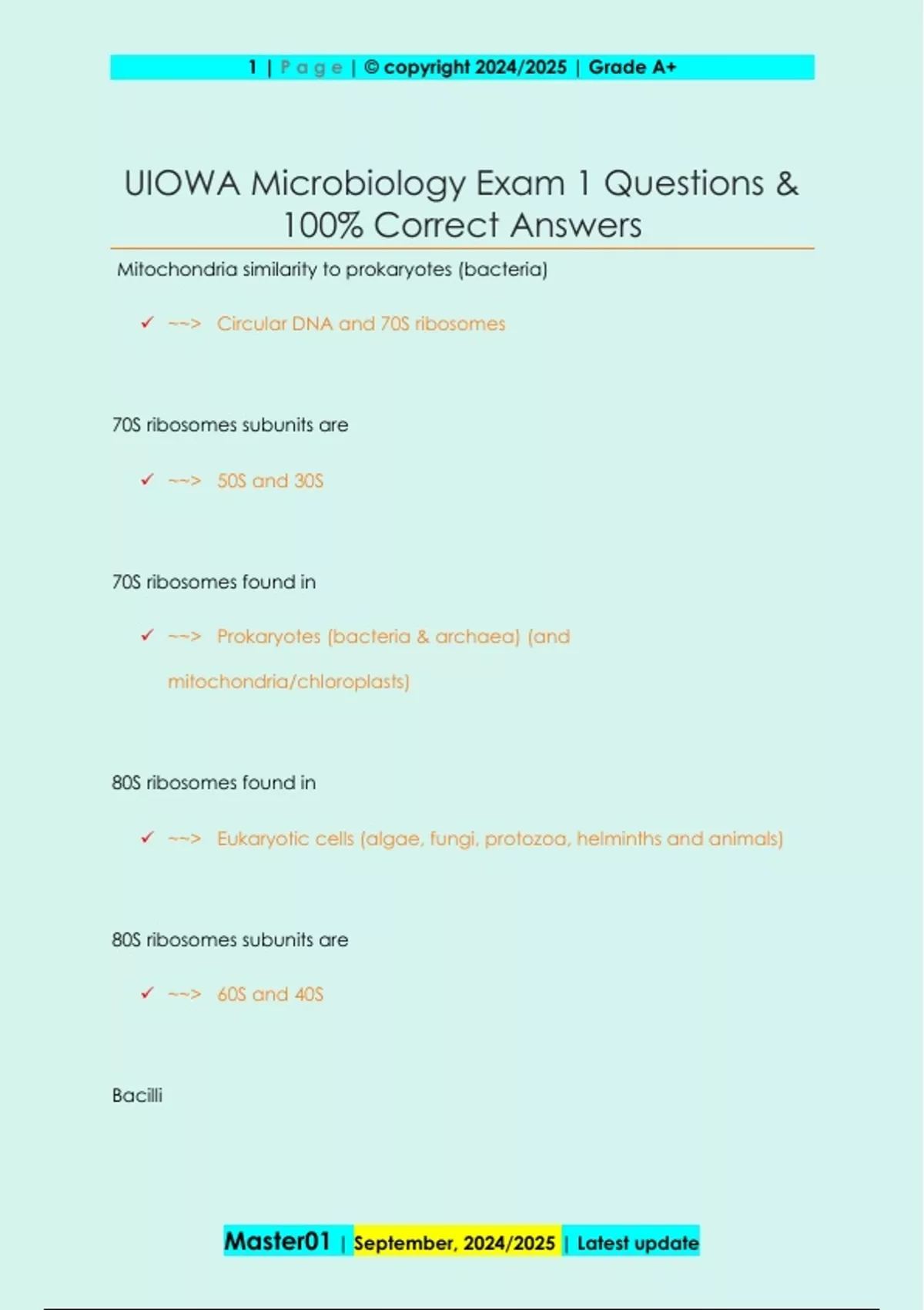 UIOWA Microbiology Exam 1 Questions &