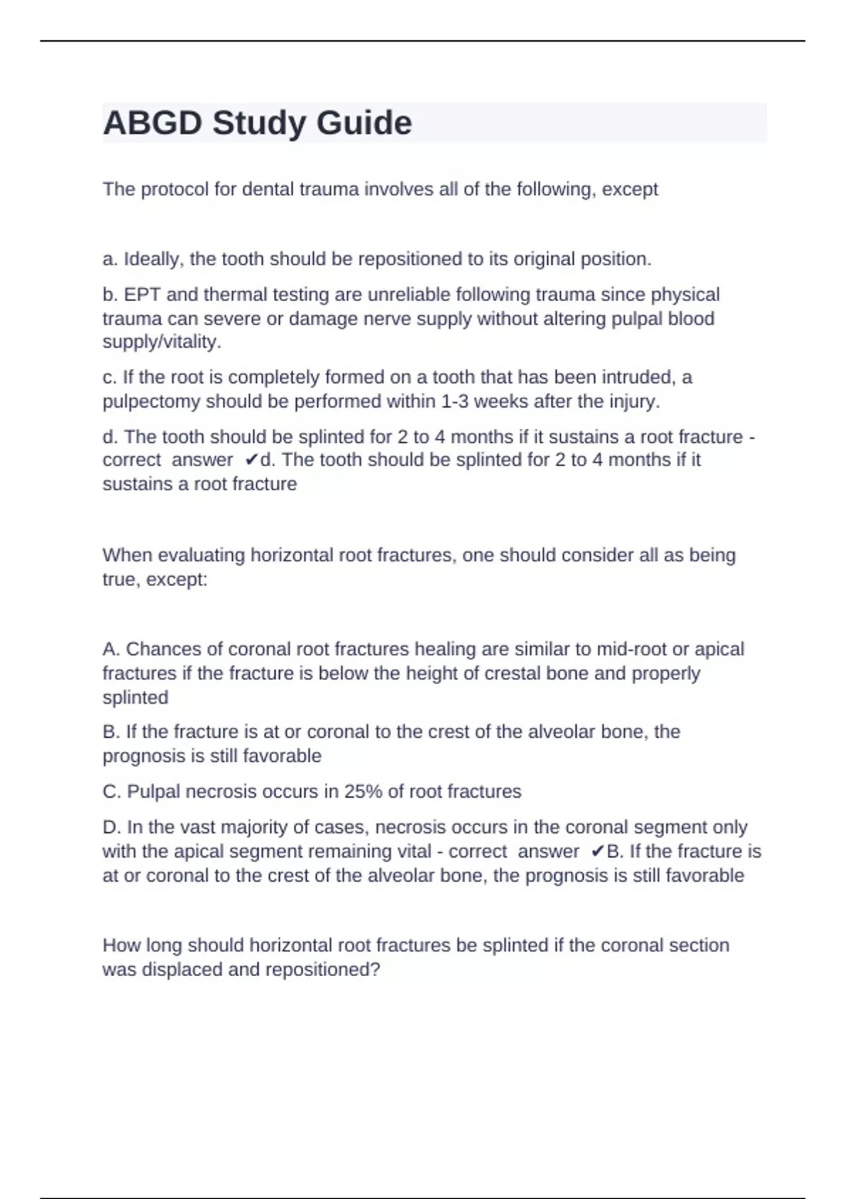 correct answer ✔d. The tooth should be splinted for 2 to 4 months if it