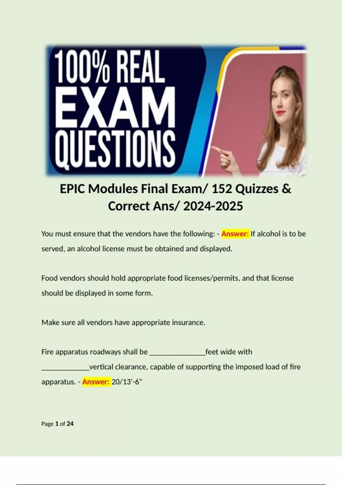 EPIC Modules Final Exam/ 152 Quizzes & Correct Ans/ .