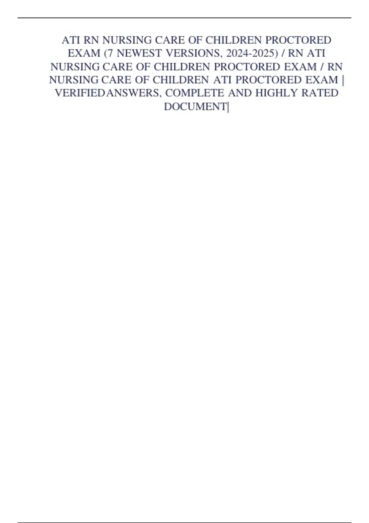 NURSING CARE OF CHILDREN ATI PROCTORED EXAM |