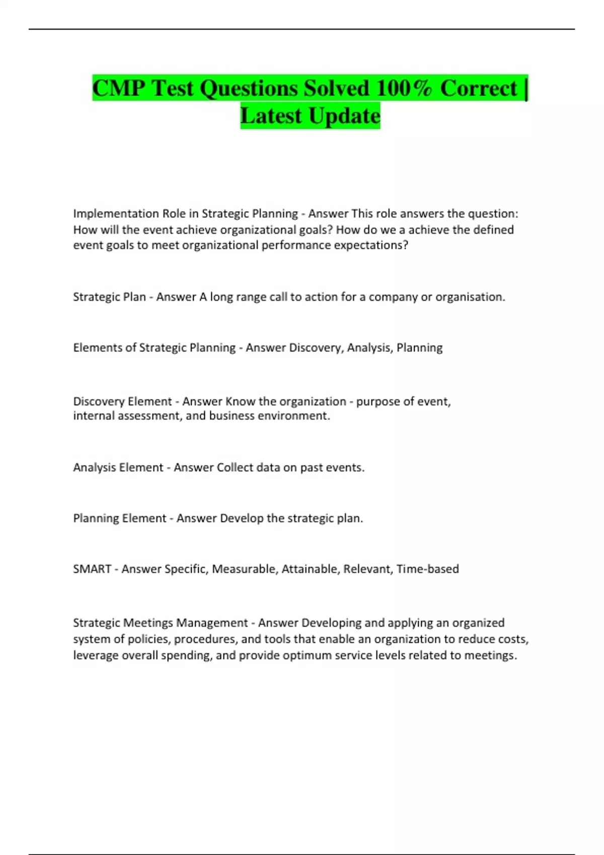 Strategic Meetings Management Plan - Answer An ongoing activity, developed as