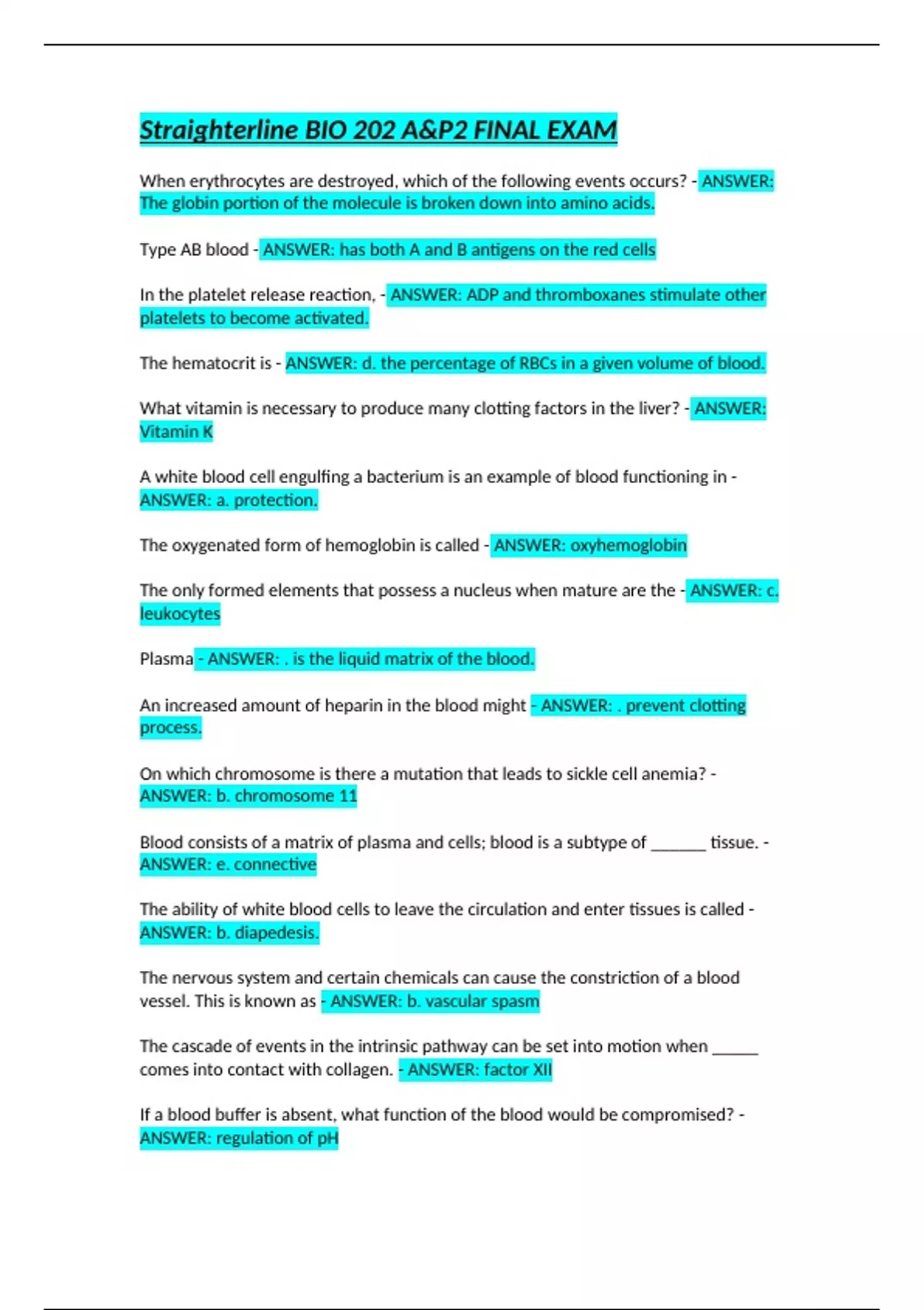 The hematocrit is - ANSWER: d. the percentage of RBCs in a given volume of blood.