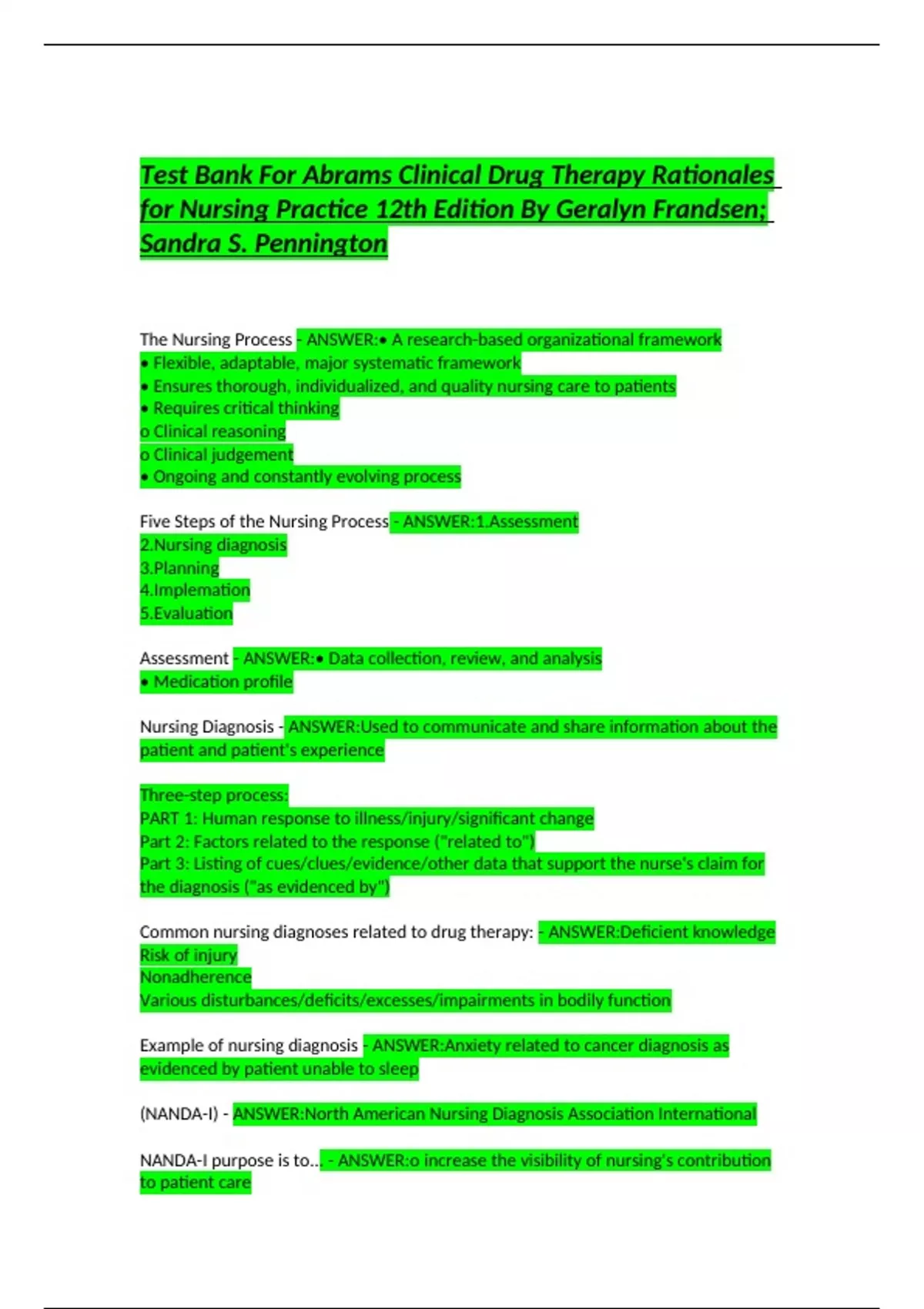 Test Bank For Abrams Clinical Drug Therapy Rationales