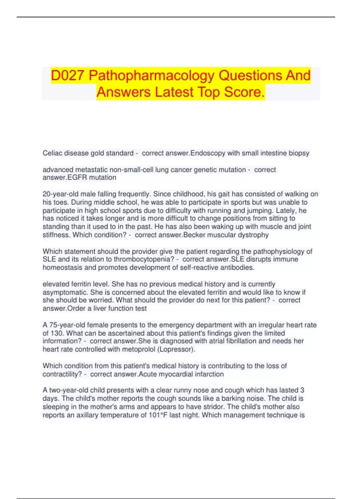stiffness. Which condition? - correct answer.Becker muscular dystrophy