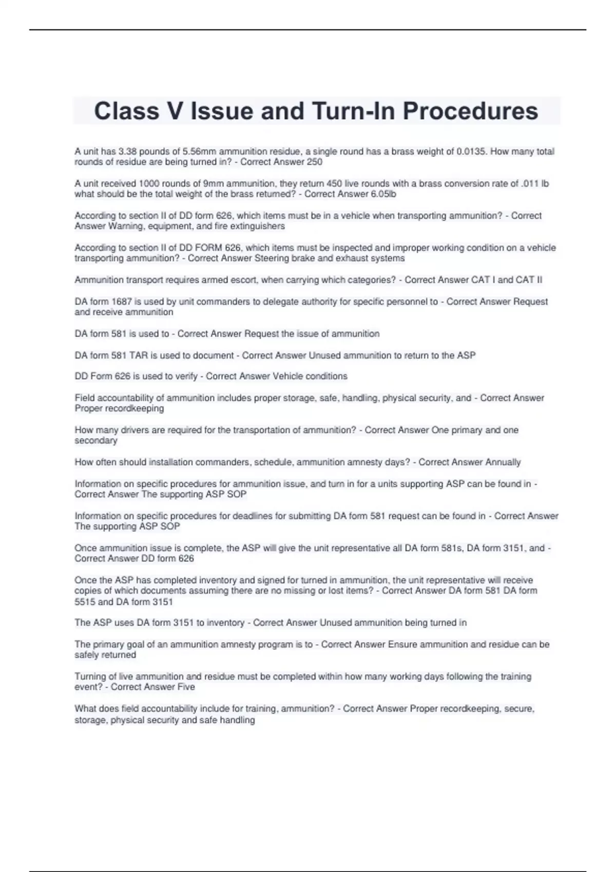 The ASP uses DA form 3151 to inventory - Correct Answer Unused ammunition being turned in