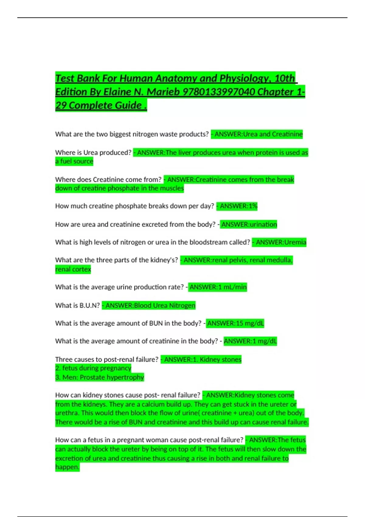 Test Bank For Human Anatomy and Physiology, 10th