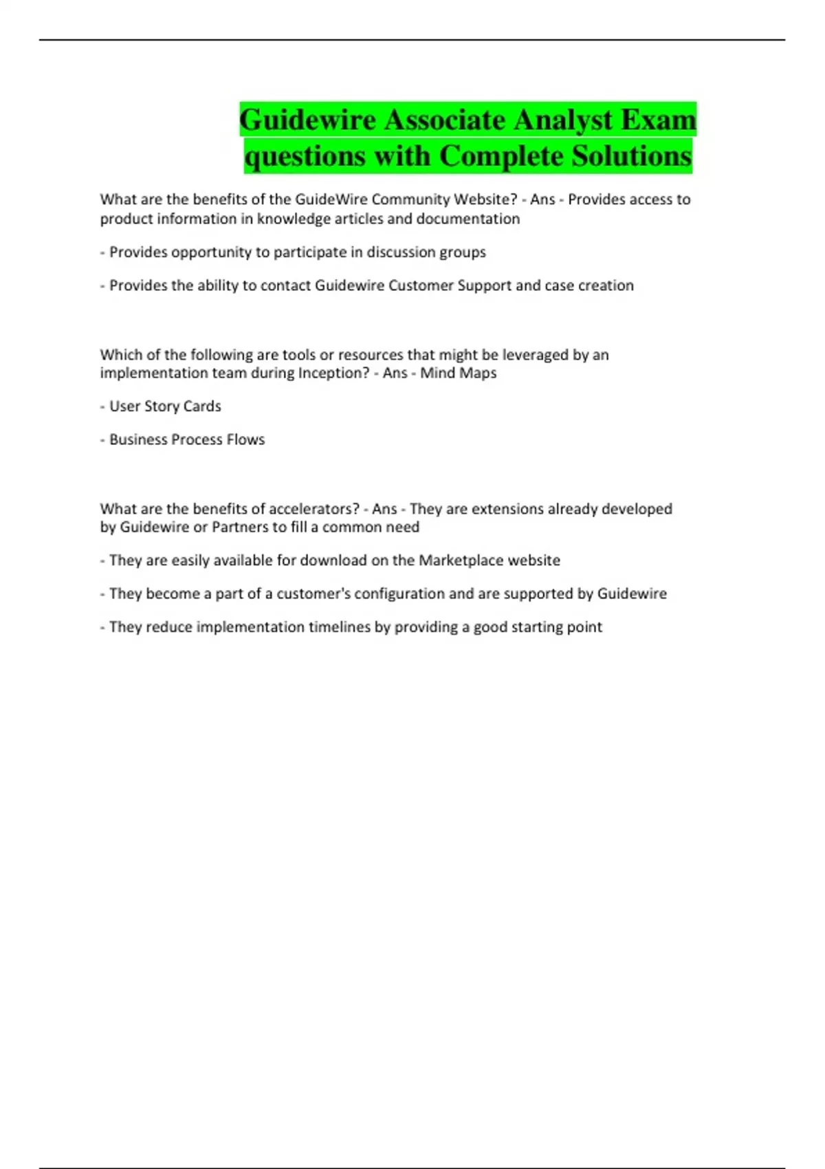 Guidewire Associate Analyst Exam questions with Complete Solutions