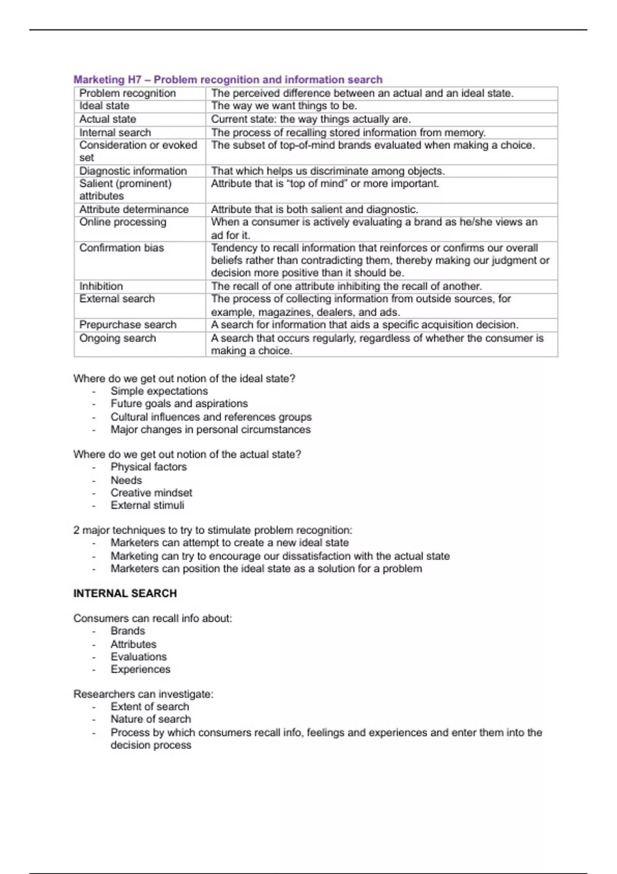 Marketing H7 – Problem recognition and information search