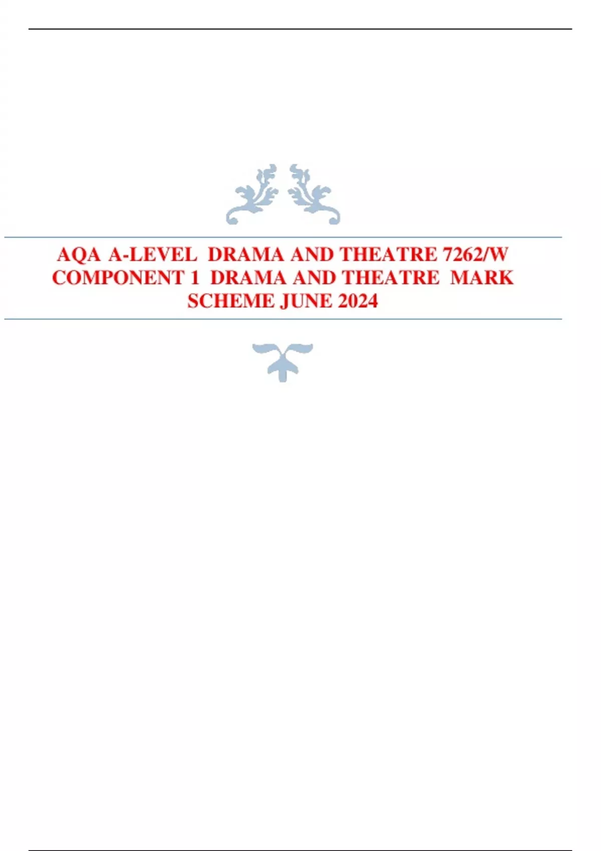 , MARK SCHEME – A-LEVEL DRAMA AND THEATRE – 7262/W – JUNE 2024