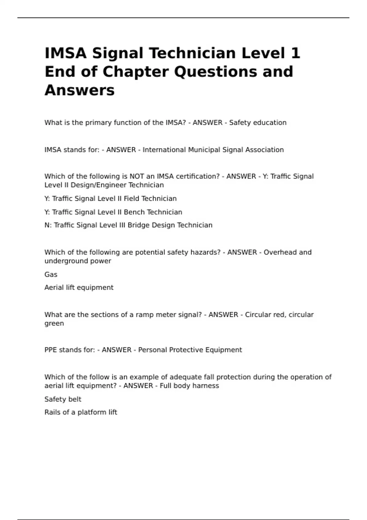 Which of the following is NOT an IMSA certification? - ANSWER - Y: Traffic Signal