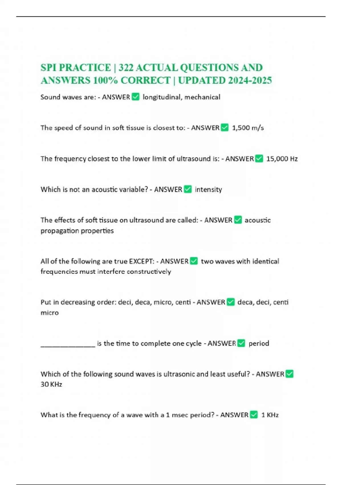 ARDMS SPI / SPI BUNDLED EXAM ACTUAL QUESTIONS AND ANSWERS VERIFIED BY EXPERT 100% CORRECT | WELL ILLUSTRATED | A+ GUARANTEE | NEWEST 2024-2025 (with everything you need to pass)