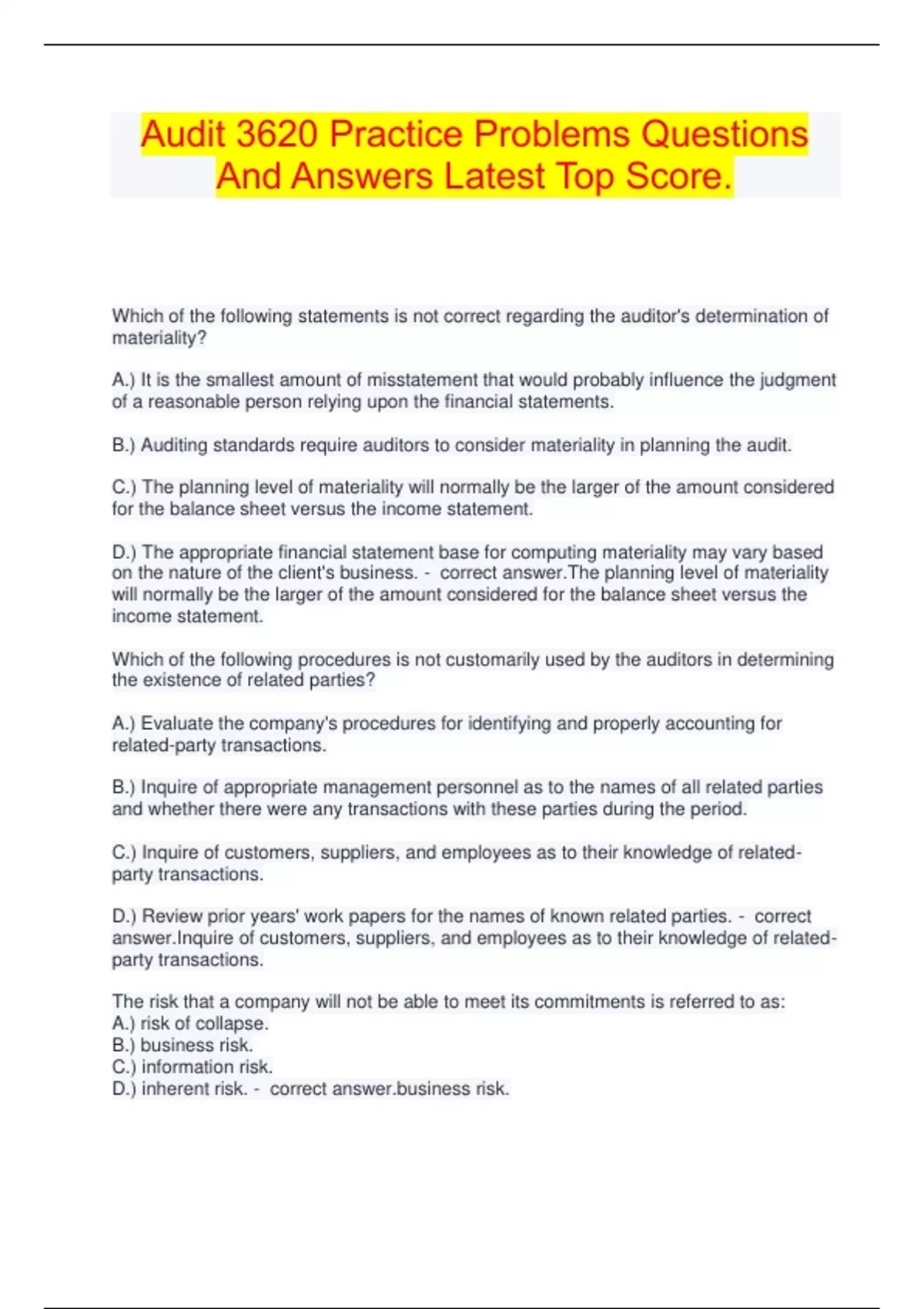 on the nature of the client's business. - correct answer.The planning level of materiality