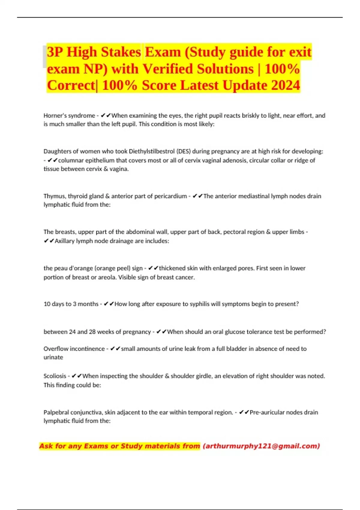 3P High Stakes Exam (Study guide for exit exam NP) with Verified Solutions | 100% Correct| 100% Score Latest Update 2024