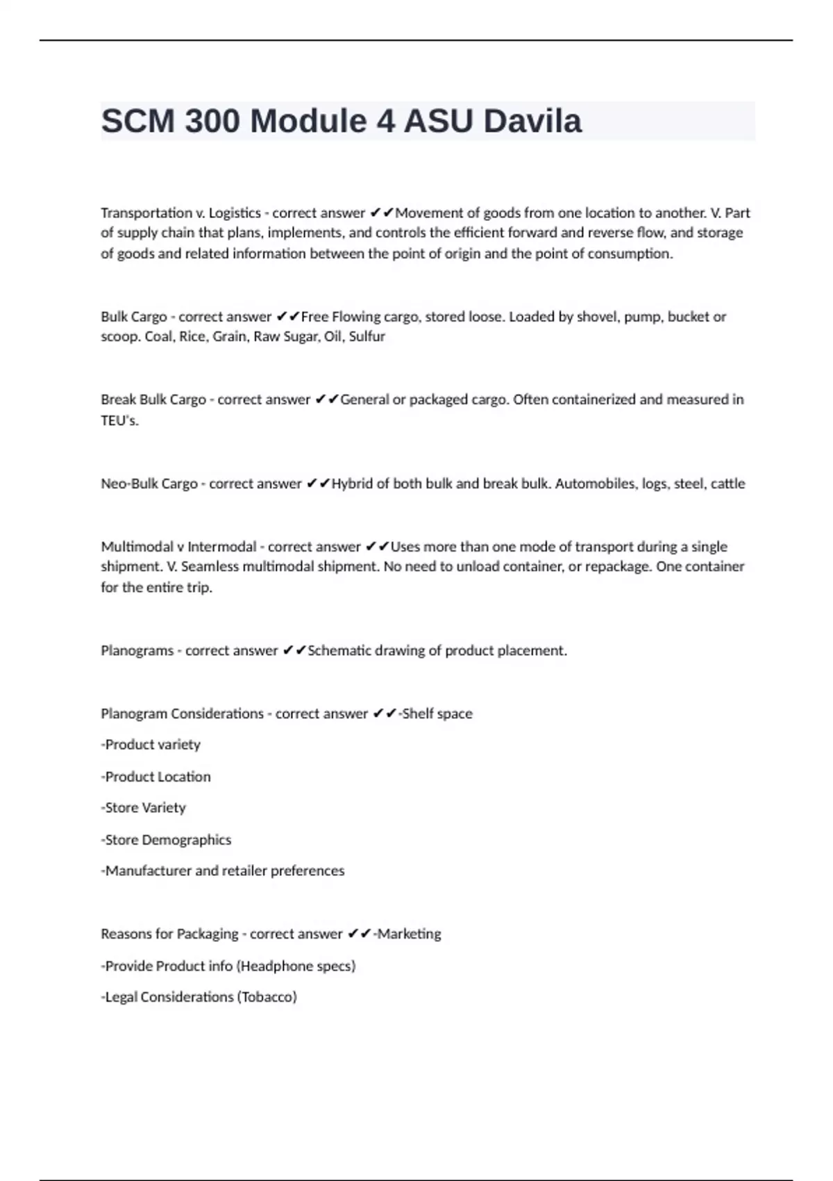 Neo-Bulk Cargo - correct answer ✔✔Hybrid of both bulk and break bulk. Automobiles, logs, steel, cattle