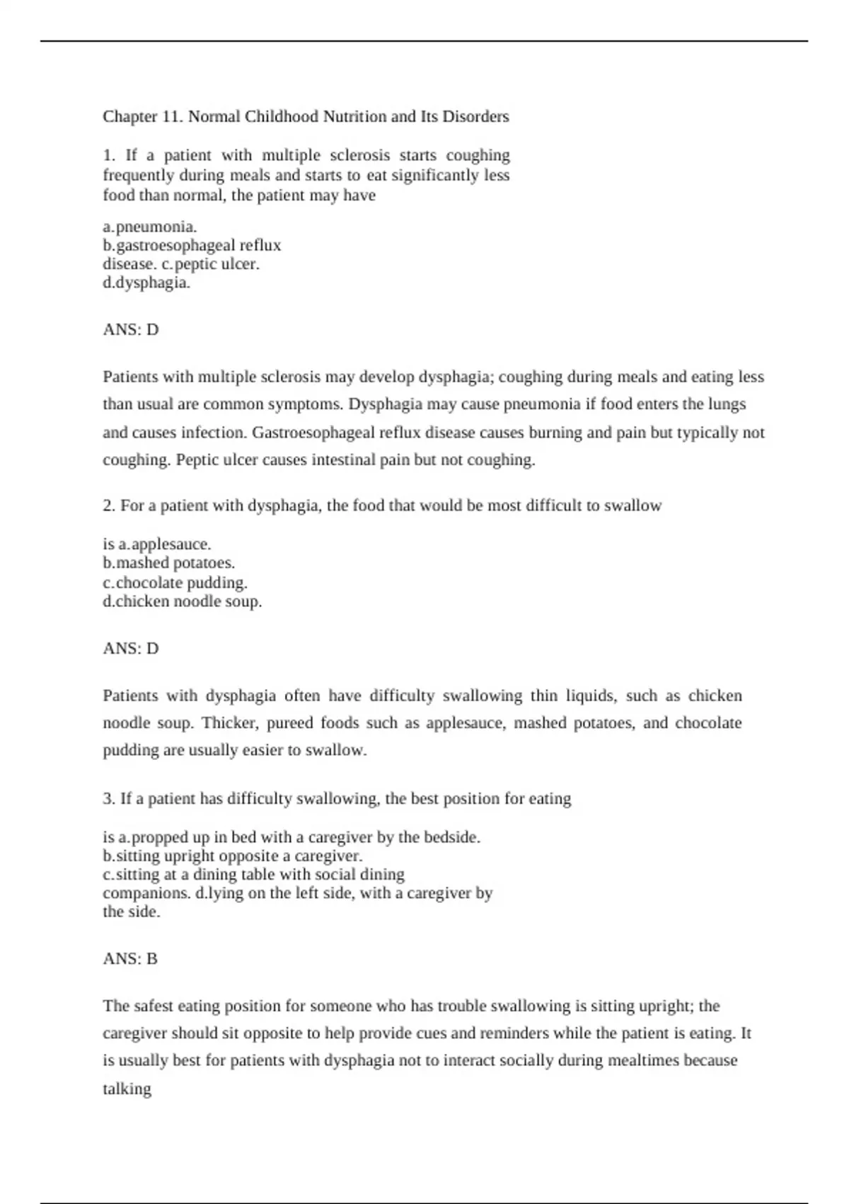 Patients with multiple sclerosis may develop dysphagia; coughing during meals and eating less