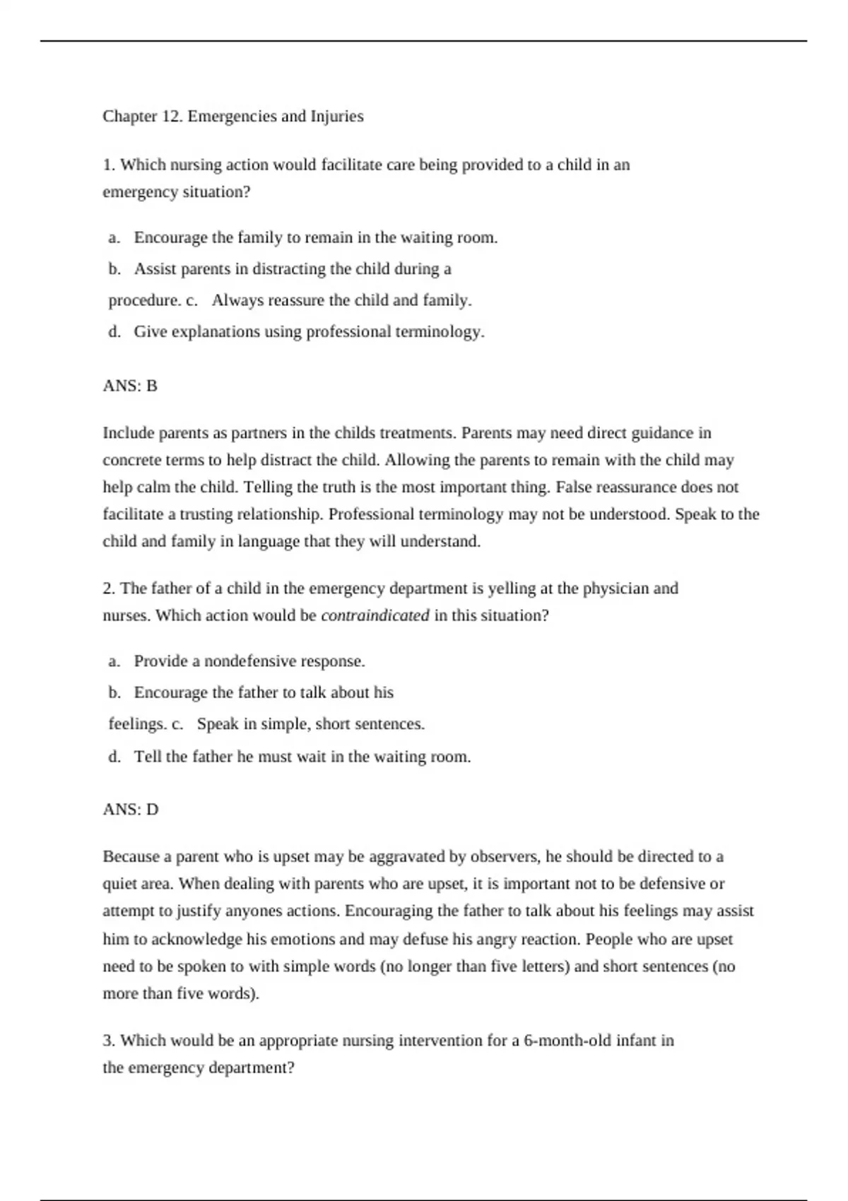 3. Which would be an appropriate nursing intervention for a 6-month-old infant in