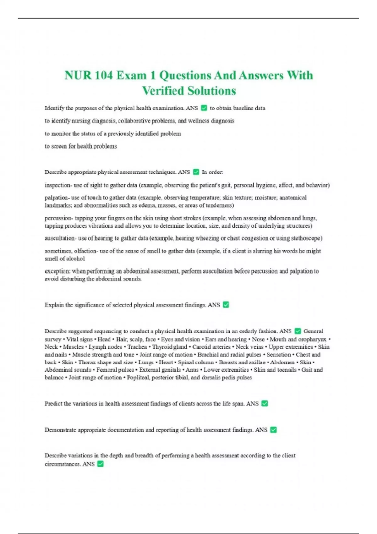 NUR 104 Exam 1 Questions And Answers With Verified Solutions