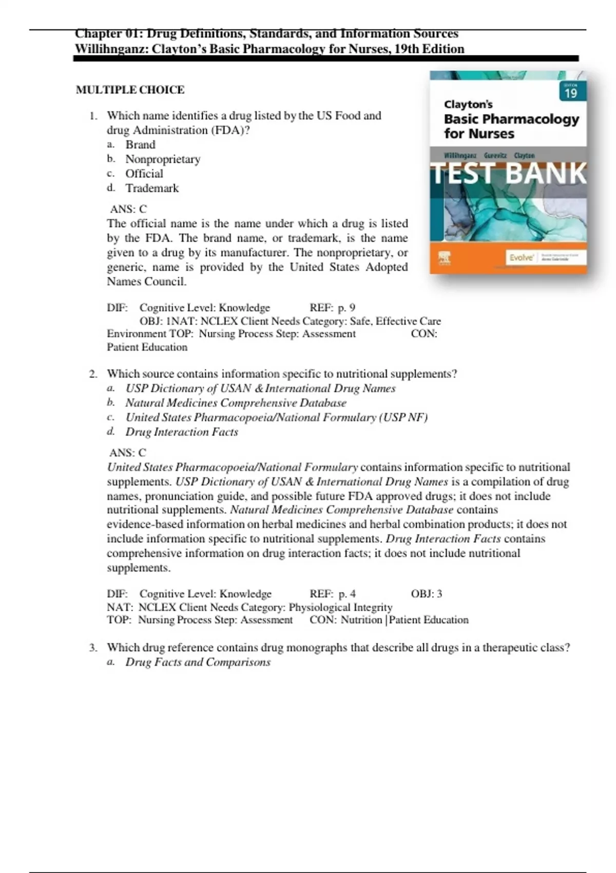 3. Which drug reference contains drug monographs that describe all drugs in a therapeutic class?