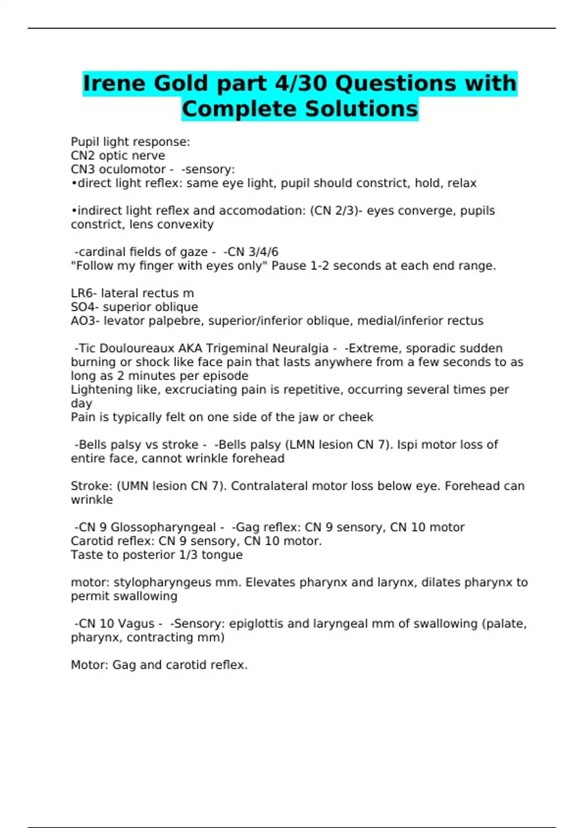 -CN 9 Glossopharyngeal - -Gag reflex: CN 9 sensory, CN 10 motor