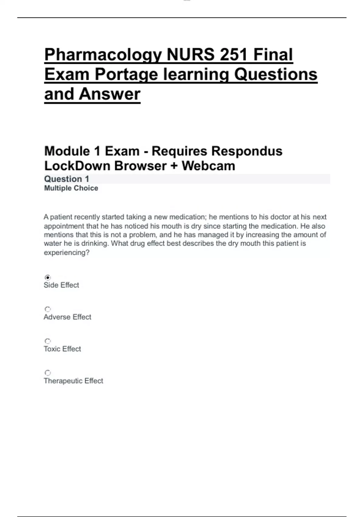Pharmacology NURS 251 Final Exam Portage learning Questions and Answer