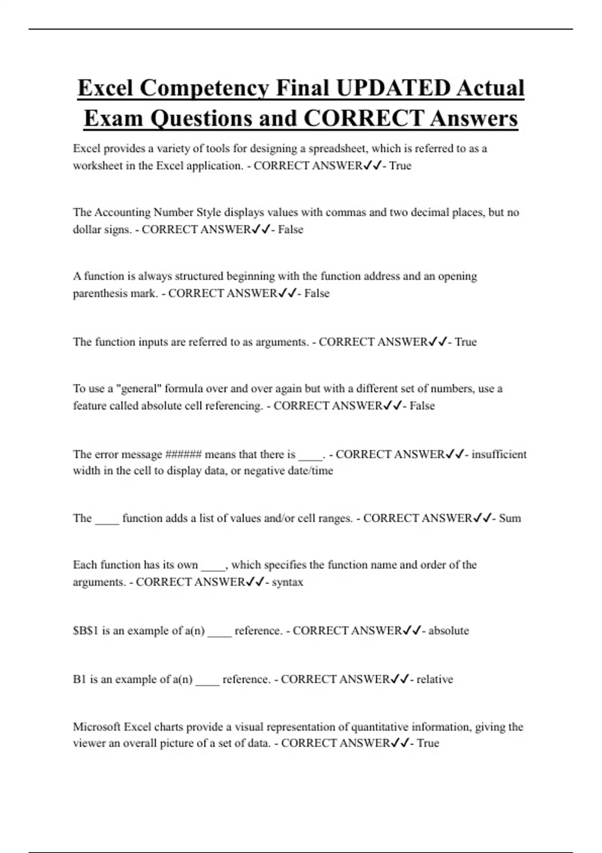 feature called absolute cell referencing. - CORRECT ANSWER✔✔- False