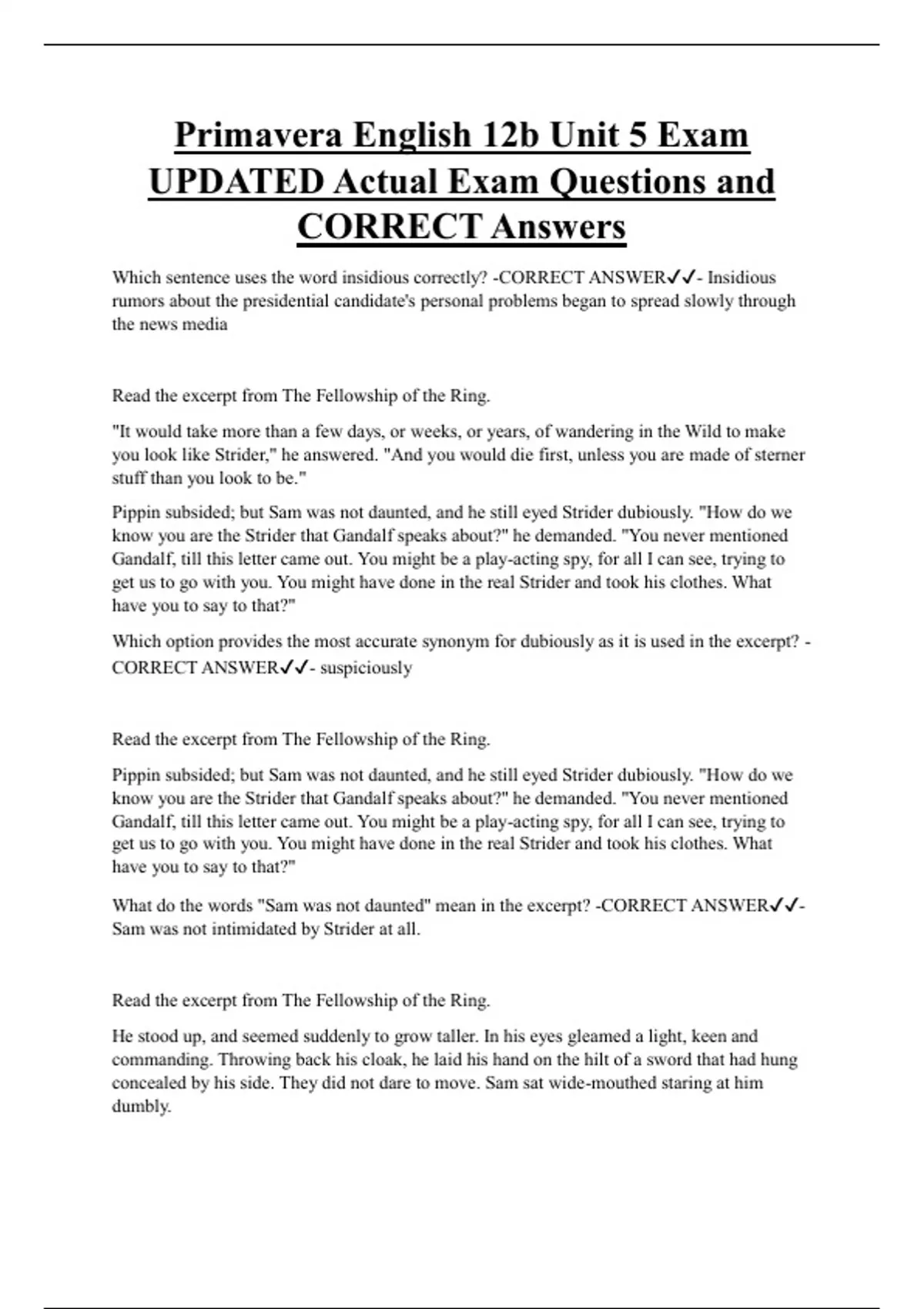 Based on the excerpt, which option most effectively -CORRECT ANSWER✔✔- Frodo is
