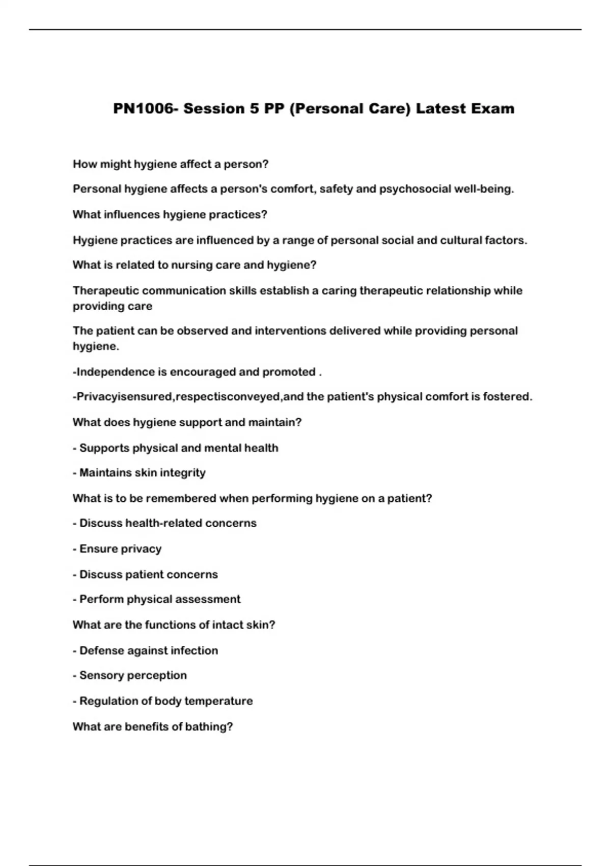 PN1006- Session 5 PP (Personal Care) Latest Exam...