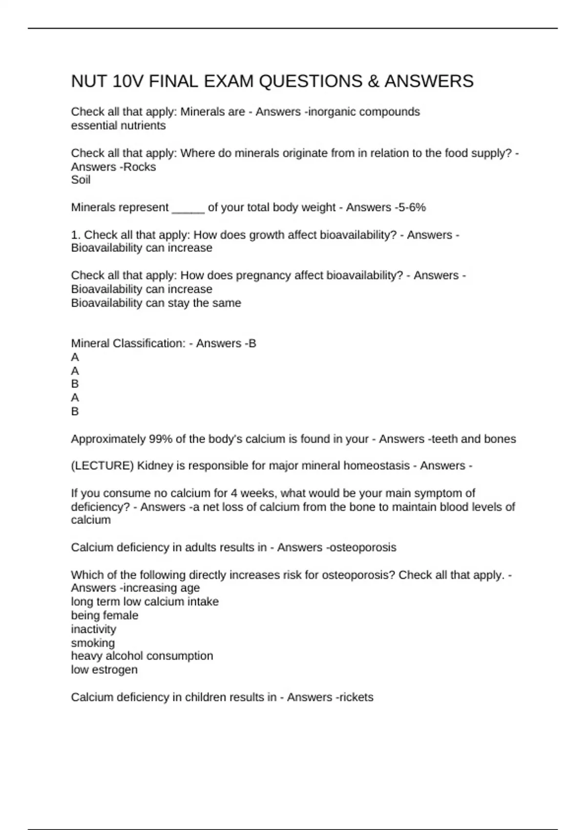 NUT 10V FINAL EXAM QUESTIONS & ANSWERS