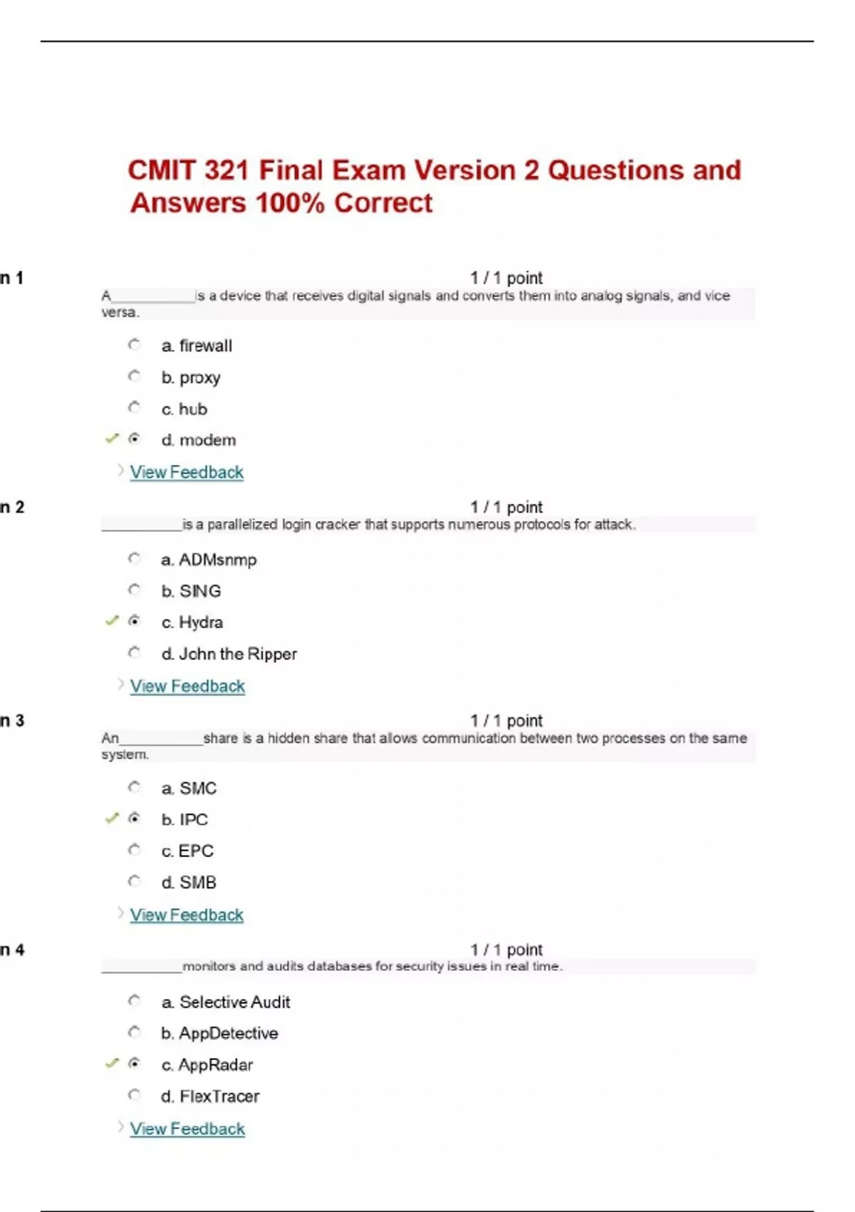CMIT 321 Final Exam Version 2 Questions and Answers 100% Correct CMIT 321 Final Exam Version 2 Questions and Answers 100% Correct