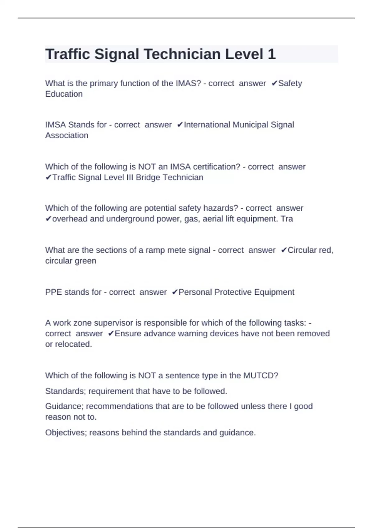 Traffic Signal Technician Level 1 questions and annswers verified 2024