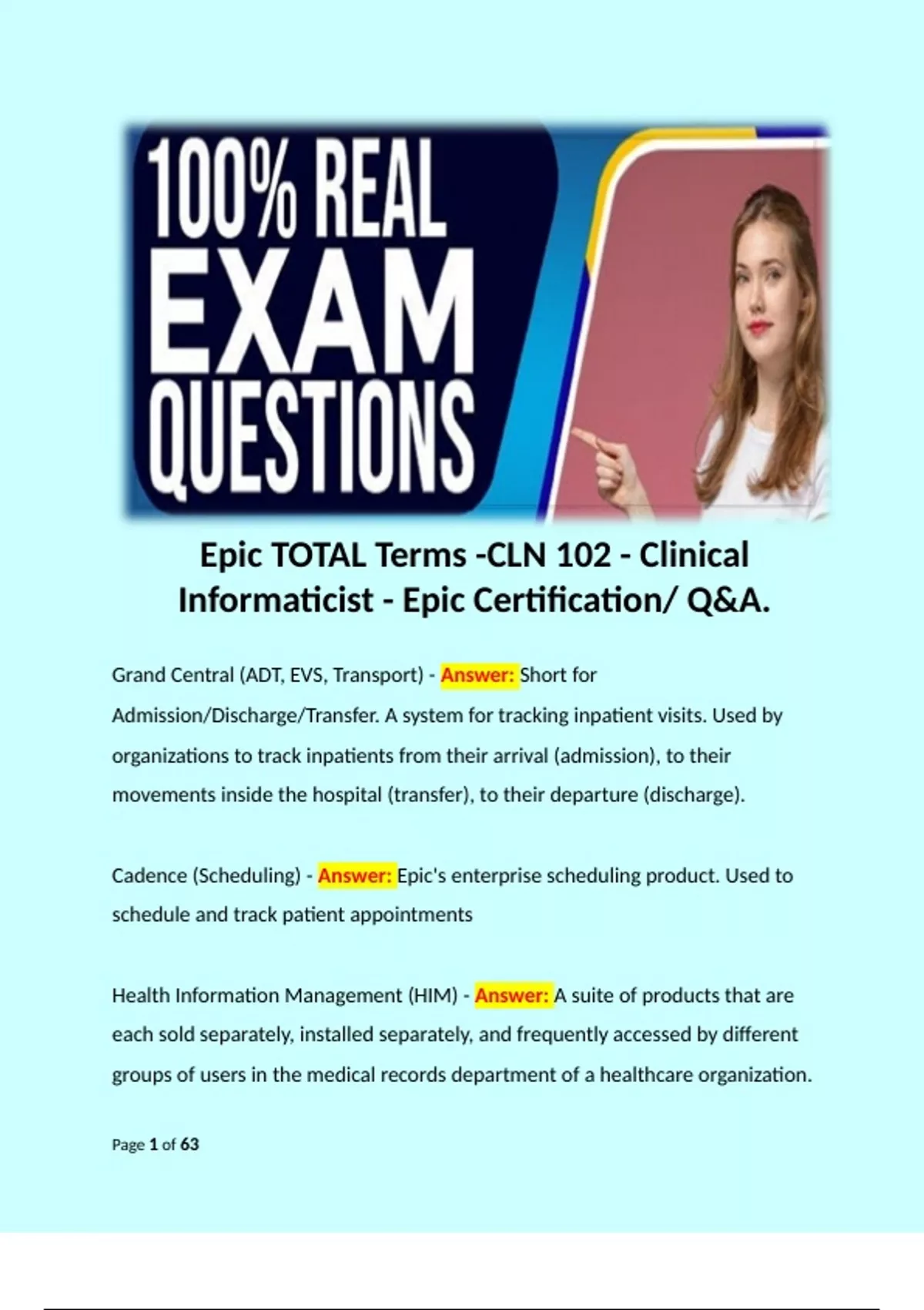 Epic TOTAL Terms -CLN 102 - Clinical Informaticist - Epic Certification/ Q&A.
