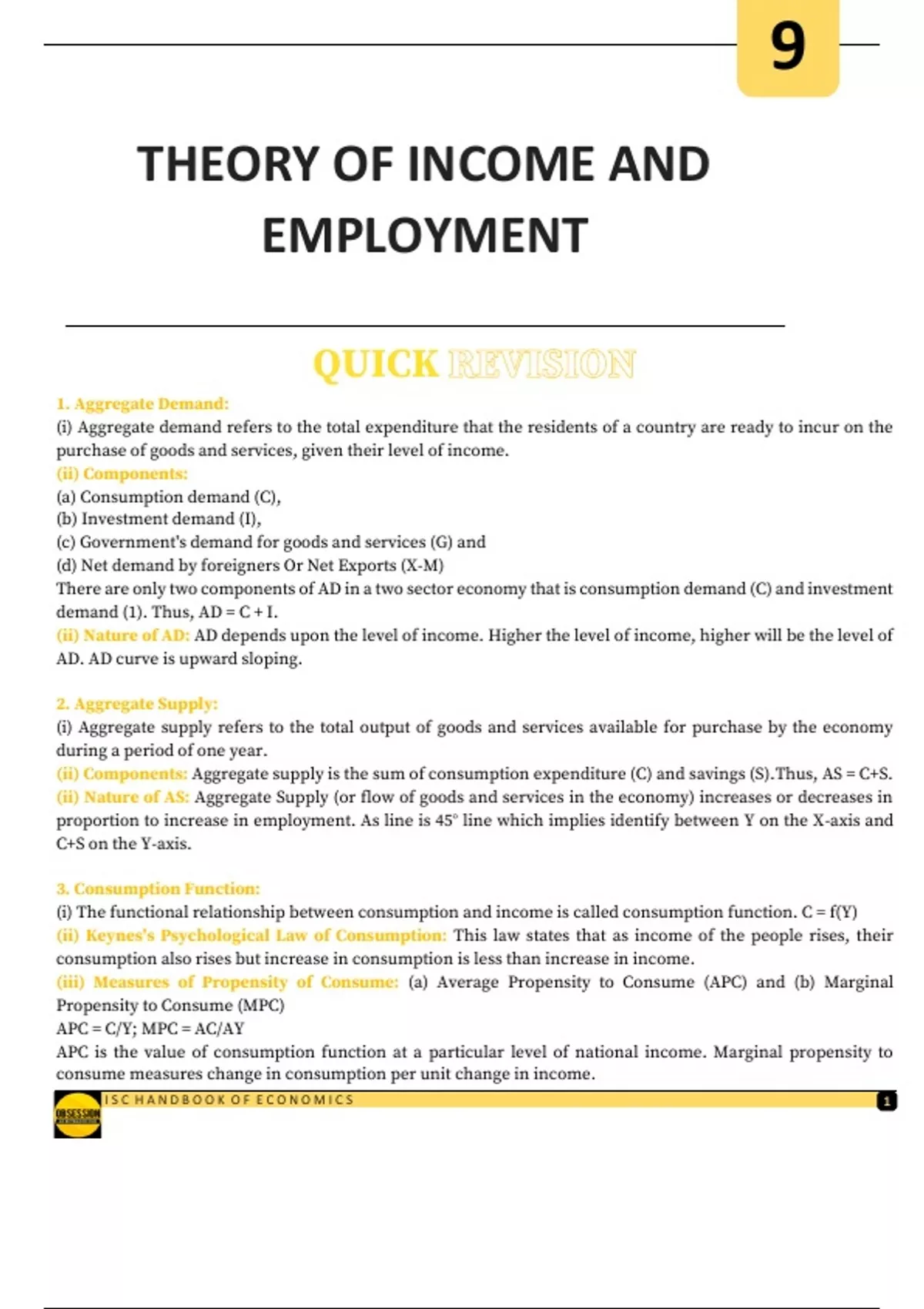 Economics – ISC Handbook of Economics – Theory of Income and Employment - Quick Revision